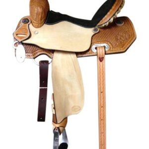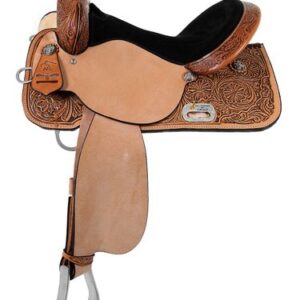 Get to the finish line in a hurry! You’ll find the suede seat, aluminum contesting stirrups with grips, and complete flank strap included will give you confidence in the saddle to ride for time.